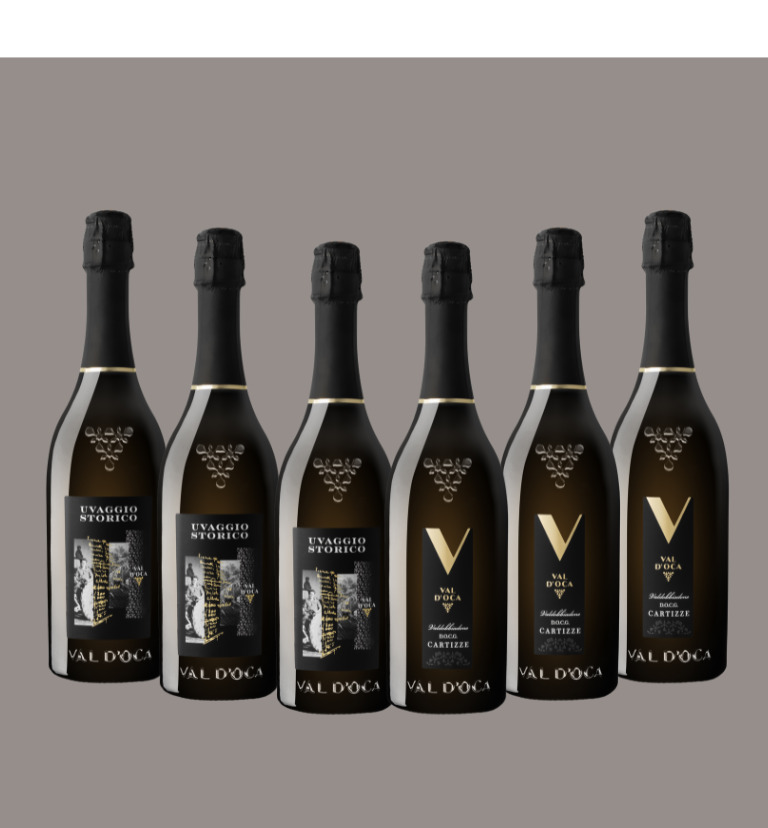 La selezione è poi composta da 3 bottiglie di Valdobbiadene Superiore di Cartizze DOCG Dry, nasce nel vigneto più rinomato di Val d’Oca che si estende su 14 ettari caratterizzati da pendenze ripide e dolci declivi. Con uve provenienti da suoli argillosi della limitata zona del Cartizze, nel cuore delle colline Patrimonio UNESCO di Valdobbiadene, questo spumante si presenta di un elegante giallo paglierino, mentre al naso si percepiscono sentori di agrumi, frutta matura e zagara. Il perlage è fine e persistente, al palato si ritrova una sensazione di macedonia di frutta. La sapidità distintiva si traduce in una sensazione di cremosità e morbidezza, rendendolo ideale in abbinamento a focacce dolci, crostate e frutta secca.